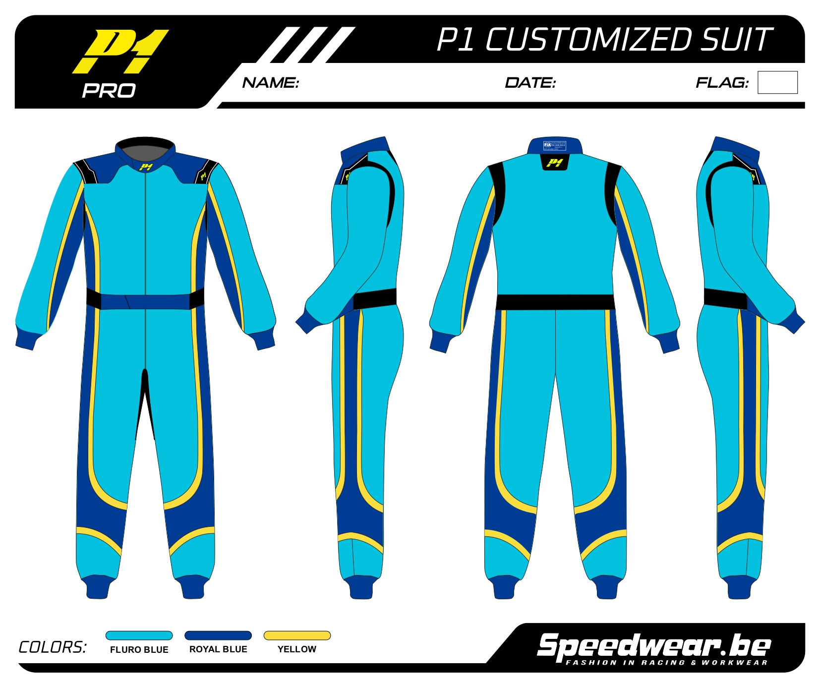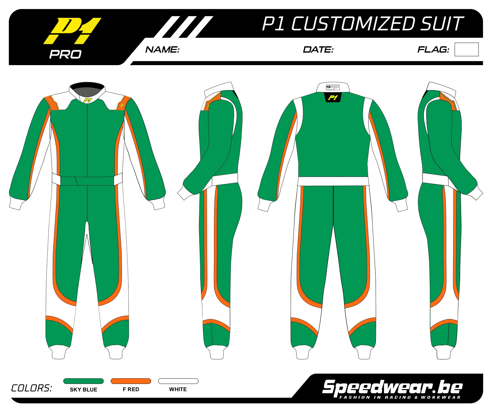 P1 FIA Race overall – Volledig op maat en in eigen design kan je een racepak laten maken in het design en kleur(en) dat jij graag wenst!