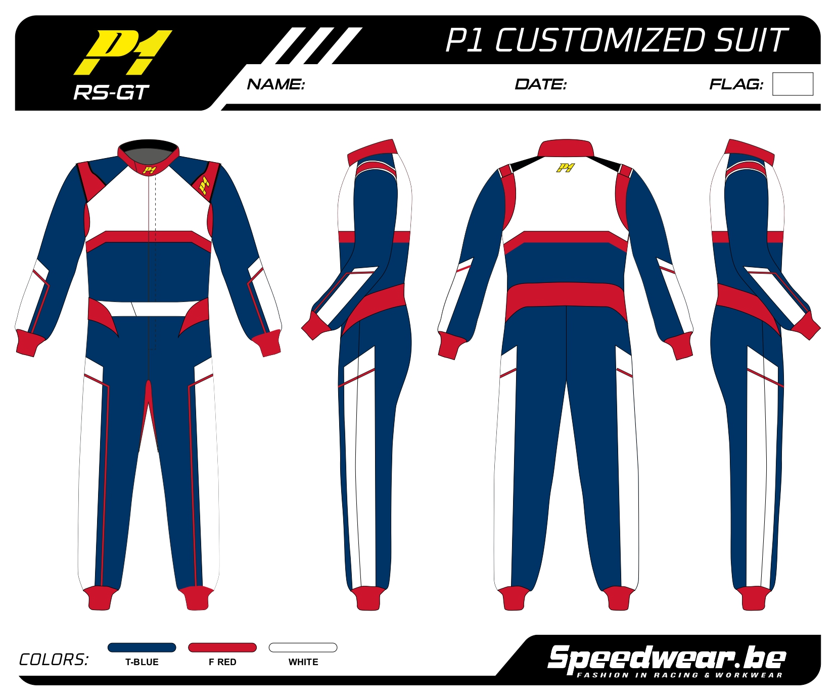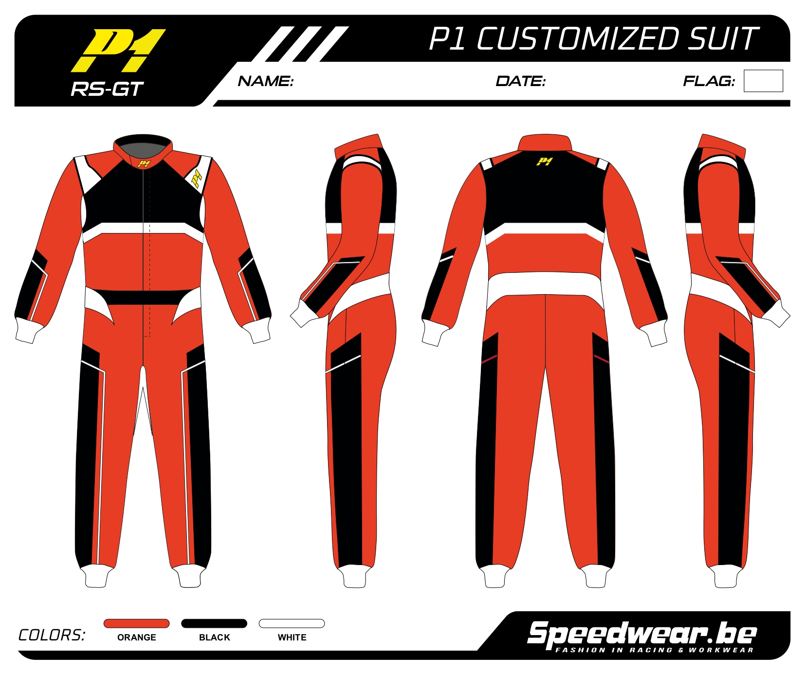 Racepak autosport van P1 – Volledig op maat en in eigen design kan je een racepak laten maken zoals jij dat graag wenst! Dat behoort zeker tot de mogelijkheden van Speedwear. Uiteindelijk bent u op zoek naar een uitstraling van uzelf en uw team met een eigen identiteit.