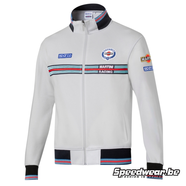 Sparco Martini Racing Zip Up Hoodie zonder kap/capuchon is een zeer hoogwaardige vest, het bevat kenmerkende details die refereren naar het legendarische Martini Racing ontwerp met zijn rood-blauwe strepen.
