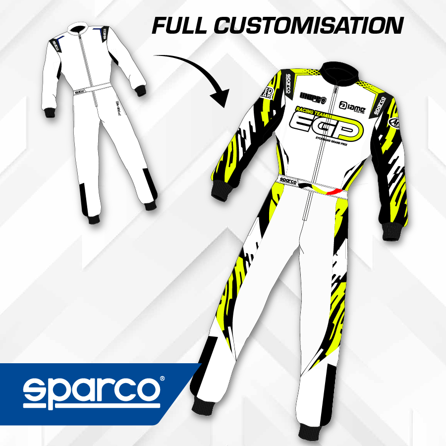 Sparco PRIME K CUSTOM, de kartoverall 100% personaliseerbaar.
