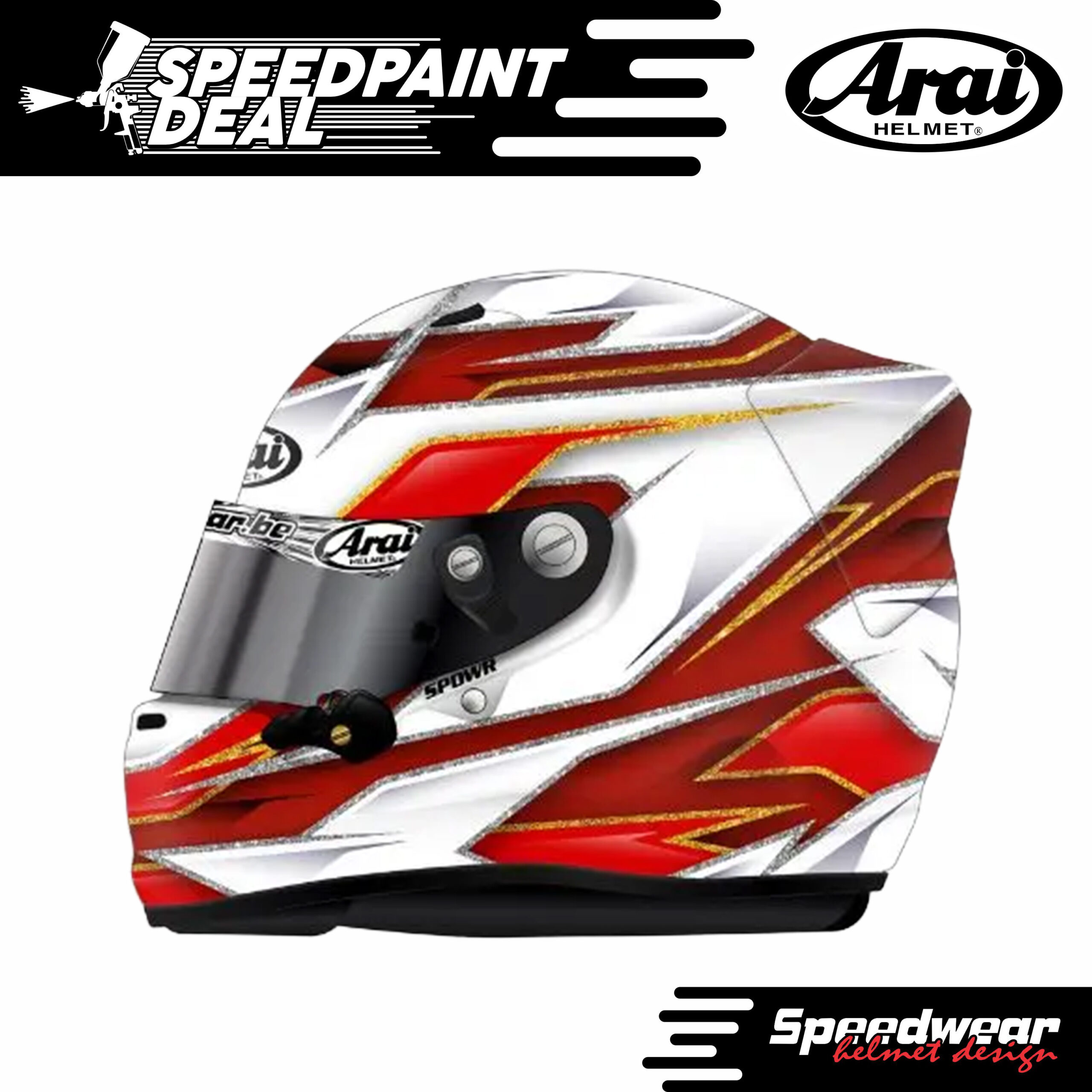 SpeedPaint Deal Red omvat design, helmspuiting en Arai of Schuberth helm. Wil je snel een helm hebben met een leuke uitstraling dan is de SpeedPaint Deal Red ideaal voor je!