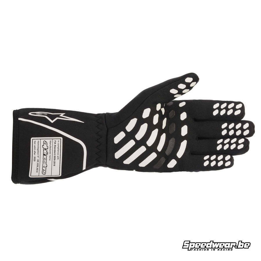 Alpinestars Tech 1-Race V2 handschoen voor autosport FIA – Zwart Wit met siliconen bewerkte handpalmen zorgen voor een goede grip op het stuur, voldoet aan de nieuwste homologatie FIA 8856-2018.